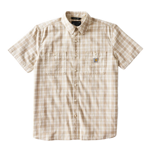 Classic and dependable, this men's short-sleeve plaid shirt is ideal for on the clock and off. It's made to move from stretch twill that's shrink-resistant. The relaxed fit sits closer to the body, and the shorter length can be worn tucked or untucked.