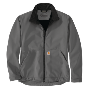 10-ounce softshell • Rain Defender® durable water-repellent • Center-front zipper with chin protector • Mock-neck collar • Hook-and-loop adjustable cuffs • Adjustable drop tail hem • Two lower-front pockets with zipper closures • Interior pocket with hook-and-loop closure • Imported